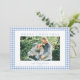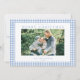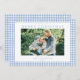Crie os seus cartões de Natal personalizados com uma das suas fotografias familiares favoritas, juntamente com um nome de tipografia minimalista personalizado e um ano num fundo de xadrez de gingham azul giro.