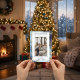 Cartão De Festividades Foto de Natal com Xadrez Azul e Branco no Retrato