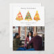 Ilustração da árvore Árvore de Natal em forma de fatias de pizza cobertas com estrelas. Personalize o nome, ano e foto.