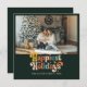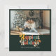 Mande um favor festivo com este cartão colorido de "Feriados Mais Felizes". Apresentando uma tipografia ousada e inspirada em vintage e sua foto favorita da família pela árvore, ela combina o encanto lúdico com um confortável calor de férias. Perfeito para famílias que querem um caminho alegre e na moda para compartilhar desejos de férias.