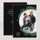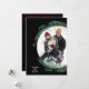 Uma coroa de galhos de pinheiros, bagas e folhas em um fundo preto rodeia sua foto favorita com sua saudação em letras quicas na frente e sua personalização e uma mensagem mais longa nas costas. ESCOLHA pontos vermelhos ou brancos no verso. Selecione Matte para o papel mais pesado e alta definição para melhor qualidade de impressão.