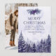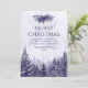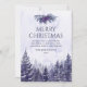 Um cartão de Natal elegante e rústico de floresta de pinheiros com aquarela roxa para você personalizar adicionando sua própria mensagem, detalhes e foto no verso. Criado por Thisisnotme©
