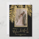 Frentes de palma brilhantes douradas brilhantes em preto destacam sua foto favorita nessas Cartões de foto de Natal de feriado. "É uma vida maravilhosa", ou qualquer saudação que você escolhe, e seus nomes embaixo em letra chic. Adicione mais fotos ou mais detalhes na parte traseira com o link PERSONALIZAR. Selecione Alta Definição para melhor qualidade. MAIS CORES feitas para você em nossa loja.
