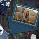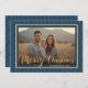 Cartão De Festividades Foto de Natal do Elegante Marinho Azul e Estrelas