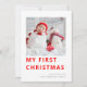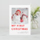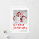 Foto de Natal do Modern Baby First. Meu Primeiro Natal em uma tipografia moderna e ousada em vermelho. Basta substituir a imagem de exemplo pelo seu próprio formato quadrado favorito e personalizar com sua saudação e nome na parte inferior e mensagem na parte traseira.
