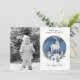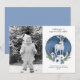 Cartão com fotos de Solstício de inverno. Feliz Solstício! Celebre a noite mais longa do ano com este belo design de Natal Feriado de inverno Solstício. Este design de aquarela apresenta uma lua de cheio com uma lua azul escura, estrelas douradas, um buquê floral azul e branco de inverno, cervo branco de rocha e pontos de aglomeração metafísica de cristais esotéricos azuis e roxos. Texto pronto para personalizar com seu nome e endereço. Modelo de foto pronto para sua foto.