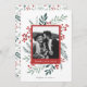 Este cartão de feriado de 1 foto, completamente personalizável, apresenta uma elegante botânica de wintery color aquosa pintada manualmente, que elegantemente enquadra sua foto. Vem com um padrão correspondente no verso e na sala para escrever uma mensagem personalizada. Quer personalizar ainda mais? Clique em "Editar usando a Ferramenta de Design." Esta design faz parte de uma coleção. Arte original da designer Nicole Barreto. Compre cartões de natal e muito mais em www.zazzle.com/store/nbpaperco