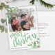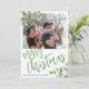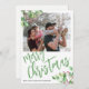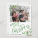 O moderno guião de Natal Feliz Feriado Feriado Feriado Feriado Feriado de inverno cartão de saudação de fotos com galhos de cor da água da moda e bagas sagradas. Personalize-o com sua foto e seu texto em ambos os lados!