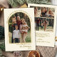 Cartão de Natal Feliz de Férias Feliz de Natal do Elegante Dourado Arch 4. Comemore a temporada em estilo com este elegante cartão de Natal com fotos da família apresentando um quadro fotográfico em forma de arco moderno em forma de cor dourada. Personalize-o com as suas fotografias familiares favoritas, o nome da família e o ano em fundo branco ou bege neutro. O design festivo minimalista é destacado com a elegante tipografia de Feliz Feriados de cor faaux-gold, criando um aspecto quente e eterno. O verso mostra 3 colagens de fotos com borda dourada e modelo de mensagens de feriado com nomes manuscritos. Um cartão de férias perfeito para compartilhar com a família e os amigos na época de férias de inverno.