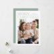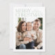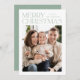 Cartões de foto de Natal moderno com "Feliz Natal" exibido no topo da design em letra verde da casa da moeda com fundo branco. Personalize o simples cartão de Natal com seu nome de família e foto. A placa se reverte para exibir um fundo da casa da moeda com sutis pontos brancos (neve).