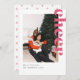 Este Cartões de foto de Natal moderno apresenta a palavra "Cheer" em uma elegante fonte com muitas estrelas dentro do texto. A parte traseira do cartão apresenta um fundo vermelho da árvore de Natal com espaço para inserir sua própria mensagem.