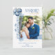 Cartões de Natal para casados e noivos para recém-casados para enviarem o seu primeiro natal casado. A design elegante e moderna mostra sua imagem em formato quadrado, emoldurada com delicada terra botânica azul e decorada com um trio de ornamentos de férias. Com o casamento e o Bright... o nosso primeiro natal como o Sr. e a Sra., com um texto editável para a sua saudação personalizada, como, por exemplo, tem um pequeno natal feliz. Por favor, navegue na minha coleção de Cartões com fotos Casados de Natal para mais designs.