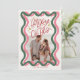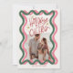 Cartão De Festividades Foto de Natal rosa e verde Wavy Frame 2