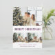 Foto roxa personalizada Cartão de Natal Merry com uma colagem fotográfica com uma fonte moderna na frente e um fundo roxo escuro com neve caindo e estrelas na parte de trás. Personalize facilmente este cartão de feriado roxo com as suas fotografias, o nome da família e o ano.