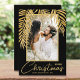 Frentes de palma brilhantes de ouro brilhante destacam sua foto favorita nesses Cartões de foto de Natal pretos de fundo. Selecione Matte para o papel mais pesado e alta definição para melhor qualidade.