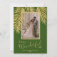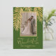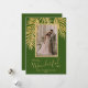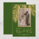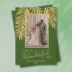 Frentes de palma brilhantes de ouro, brilhantes e brilhantes, em um fundo verde, destacam sua foto favorita nessas Cartões de foto de Natal de feriado. "É uma vida maravilhosa", ou qualquer saudação que você escolhe, e seus nomes embaixo em letra chic. Adicione mais fotos ou mais detalhes na parte traseira com o link PERSONALIZAR. Selecione Alta Definição para melhor qualidade. MAIS CORES feitas para você em nossa loja.
