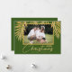 Frentes de palma brilhantes de ouro brilhante em um fundo verde escuro destacam sua foto favorita nessas Cartões de foto de Natal de feriado. Feliz Natal e seus nomes no final em letra chic. Alta definição para melhor qualidade. MAIS CORES e estilo multifoto feito para você em nossa coleção.