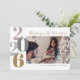 Cartões de Natal personalizados e acessíveis com um modelo simples para personalização. Anuncie o seu noivado na temporada de festas com este cartão de foto de Ano Novo moderno e minimalista. O design apresenta uma tipografia grande com a data do novo ano e o título "Tocando o Ano Novo" em cores mauve, cinza e dourado suaves. Personalize com sua foto e texto personalizado. Use as ferramentas de design para escolher qualquer fonte e cor, adicione mais fotos e crie um ímã de foto de Ano Novo único e exclusivo.