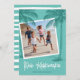 Traga os calores vibes havaianos para os seus entes queridos nesta época de festas! Nosso cartão de Natal havaiano moderno é uma expressão de amor, apresentando um delicioso fundo azul turquesa, um espaço quadrado para uma foto da família, palmeiras impressionantes de azul escuro e adornado com a saudação 'Mele Kalikimaka'. Personalize ainda mais com o nome da sua família. Isso não é apenas um cartão de Natal, é um mini-férias em um envelope.