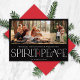 Estes cartões de saudação de fotos de feriado apresentam a saudação, "Desejando-lhe um Feliz Natal e um Feliz ano novo", juntamente com a saudação, "Espírito de Paz", em grande marfim e letras vermelhas em um fundo preto com marcadores para adicionar duas das suas fotos favoritas, nome da família e o ano.
