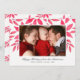 Feliz e poinsettia de aquarelas pintadas à mão com galhos e folhas com foto emoldurada.