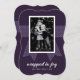 Este cartão de foto único e elegante para o feriado ou Natal com um motivo de laço e a frase "envolto em alegria" vai deliciar seus amigos e familiares nesta época de festas. Uma maneira maravilhosa de enviar votos festivos. Parte de uma coleção da Parcel Studios.