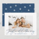 Envie cartões de natal de na moda este ano com o nosso cartão com fotos de férias Jingle All Way! O cartão de feriado moderno apresenta "Jingle All The Way" em uma camada azul de script de marinho de tendência. Personalize a parte frontal da placa adicionando sua foto e nome(s). A simples carta de festas inverte-se para um design de floco de neve marinho e branco.