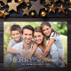 Uma simples placa natalícia com um design mínimo e uma foto horizontal que preenche a frente da placa plana. O design é acentuado com o tradicional script de estilo manuscrito "Feliz Natal" em cima da foto.