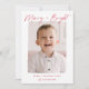 Cartão com fotos de feriado bonito e moderno com a frase "Feliz e Brilho" em um roteiro vermelho escrito à mão. Sua foto vertical é exibida com uma borda branca e dura. Personalize a frente da placa adicionando uma saudação personalizada com o nome da família mostrado abaixo. A placa reverte para exibir um fundo vermelho com um padrão brilhante de estrela branca.