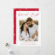 Celebre seu primeiro Natal como um casal casado com nosso cartão com fotos de feriado Casado e Bright! O cartão apresenta "Casado e Brilho" em um script moderno vermelho, escrito à mão. Sua foto de casamento é mostrada com uma borda branca. Personalize a frente da placa adicionando uma saudação personalizada com os nomes mostrados abaixo. A placa reverte para exibir um fundo vermelho com um padrão brilhante de estrela branca.