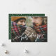 Mande o festejo de férias para a família e amigos com o nosso cartão com fotos de festas felizes, com a letra do guião! O cartão de feriado bonito exibe sua foto favorita com "feriados felizes" em uma camada branca, escrita à mão. Personalize o cartão adicionando seu nome e o ano. A placa se reverte para um fundo verde-pinho com neve branca.