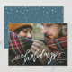 Mande alegria festiva com nosso Cartão com fotos de Feriado de Sobreposição de Script, com Letras de Feriados Felizes. Este design alegre mostra sua foto favorita com "Felizes Feriados" em uma cobertura de script branca, com letra de mão, para um toque moderno e personalizado. Adicione seu nome de família e ano para criar um cartão de manutenção. O reverso apresenta um fundo azul de ardósia com um padrão de queda de neve, adicionando charme de ventoinha a este design de cartão de feriado bonito.
