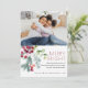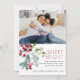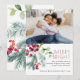 Cartão de Natal festivo com sua foto favorita, tipografia moderna e clássica, aquarela de folhas de azevinho.