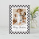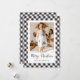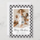 Cartão de Natal preto e branco minimalista com um padrão de xadrez de búfalo preto e branco. Personalize facilmente este elegante cartão de Natal com fotografia de xadrez com a sua fotografia, o seu texto e o nome da família.