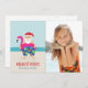 Este cartão de Natal fotográfico adorável apresenta um Papai Noel tropical desenhado à mão, usando sunga colorida e um boia de piscina de flamingo fucsia brilhante! Outros detalhes incluem uma praia arenosa, o oceano, um céu azul e tipografia estilosa, com a mensagem "Warmest Wishes" (Desejos Quentes). Fácil de personalizar com sua própria foto e texto! Envie sorrisos nesta temporada de Natal ou no Natal em julho!! A parte traseira do cartão é branca com pequenas manchas de textura de "areia".