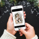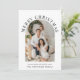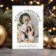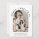 Cartão de feriado elegante com sua foto em um quadro de arco, "Feliz Natal" em tipografia serif clássica e seu nome e uma saudação sazonal em uma simples tipografia moderna. Adicione uma foto adicional no verso e sua saudação personalizada à família e aos amigos.