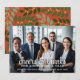 Cartão de Natal empresarial - Folhas botânicas verdes e padrão de bagas no verso. Use uma foto com o assunto preferencialmente no meio ou no topo. Uma foto mais escura funciona melhor com essa sobreposição de texto branco. Faça um cumprimento de Natal alegre e moderno com um padrão moderno e alegre no verso.