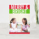 Estes cartões de Natal FELIZ e BRIGHT apresentam a sua foto de família favorita com saudações personalizadas no topo. O cobrir interno contém uma foto adicional com uma legenda opcional. Faça deste cartão de Natal moderno uma lembrança apreciada para seus amigos e família.