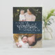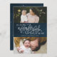 Mostre 2 fotos de sua família favorita este ano com nossos cartões com fotos de Natal É a melhor hora do ano. O cartão com fotos de feriado festivo apresenta "É a época mais maravilhosa do ano" em um roteiro escrito à mão contra um fundo de marinho azul de aquarela. Personalize o cartão de férias com imagens instantâneas adicionando 2 fotos e uma saudação personalizada. O cartão de feriado se reverte para um fundo de cor azul-d'água marinho com estrelas e pontos brancos. Projetado para coordenar com a nossa coleção de feriados "O Tempo Mais Maravilhoso do Ano".