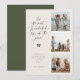 é o momento mais maravilhoso do ano!, cartão de Natal moderno minimalista de 3 fotos. Recursos, fundos suaves bege e oliva com tipografia preta elegante e detalhe de laço verde festivo.