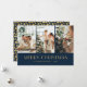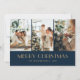 Cartão de Natal azul e dourado personalizado com uma colagem fotográfica em fundo azul escuro. Uma película de ouro estende-se ao fundo. Personalize facilmente estes cartões de Natal fotográficos com as suas imagens e texto. O efeito da folha de ouro só é simulado no trabalho de arte.