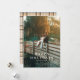 Padrão de xadrez de tartan, cartão de feriado fotográfico. Linhas de texto modelo para o seu cartões de natal, nome e ano.