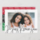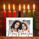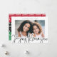 Este cartão com fotos moderno Kwanzaa apresenta uma grande saudação de script de caligrafia em preto sobre um fundo branco e uma foto horizontal solteiro. A saudação à frente diz "Joyous Kwanzaa". O backer apresenta as cores da bandeira Kwanzaa (vermelha, preta, verde) e um padrão de pano de lama branco. O padrão do cloth e/ou o backer de cor pode ser removido se desejar. Esta design é moderna, mas elegante.