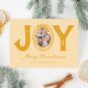 Experimente uma temporada de férias amarela e quente com nosso cartão de Natal único com doodle. Este cartão exclusivo apresenta a palavra festiva 'joy' (alegria), com a foto de sua família querida substituindo o 'O'. Inserida numa moldura desenhada à mão, estenda seu amor e cumprimentos de temporada enquanto personaliza o cartão com 'Feliz Natal' e seu nome. Oferecendo nostalgia e prazer, é o presente de Natal perfeito para seus entes queridos.