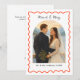Celebre a primeira temporada de festas como recém-casados com este elegante cartão de foto "Casados e Alegres". Apresenta uma charmosa moldura vermelha ondulada, perfeita para mostrar sua foto favorita de casamento ou de casal. Personalize com seus nomes e ano na frente e adicione sua mensagem sincera no verso. Ideal para anunciar seu casamento ou enviar votos calorosos de festas para familiares e amigos.