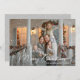 Cartão de Natal moderno e elegante. Apresenta um roteiro branco Feliz Natal, personalizado com seu nome e sua foto favorita. A parte traseira da carta apresenta o padrão do floco de neve e sua mensagem de feriado personalizada. A mensagem pode ser excluída se você desejar.