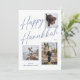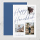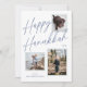 Este cartão casual, porém elegante, de fotos de feriado apresenta três fotos e lê "Happy Hanukkah" em uma letra azul marinho.