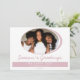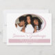 Cartão de Feriado de Script de Saudações do Modern Pink Season. Design moderno com uma foto em uma moldura oval no tema cor-de-rosa pastel e branco. Adicione sua foto e personalize o texto.