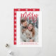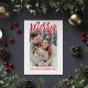 Design de cartão com fotos do estilo moderno e minimalista para o casal recém-casado. Apresenta uma foto de casamento de retrato favorita com uma camada vermelha de design de script e texto personalizado que pode ser personalizado com os novos nomes de casais. A parte de trás da carta apresenta um fundo vermelho com um padrão festivo de neve de inverno.