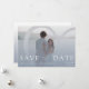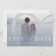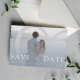 Este é um casamento elegante, salve o cartão de data, que não só representa o amor que você compartilha, como também adiciona um elemento de elegância eterno ao seu anúncio de casamento. Com seu belo fundo azul e detalhes cardíacos prateados, é a escolha perfeita para os casais darem andamento aos seus planos de casamento. Fácil de personalizar com suas próprias fotos e informações.